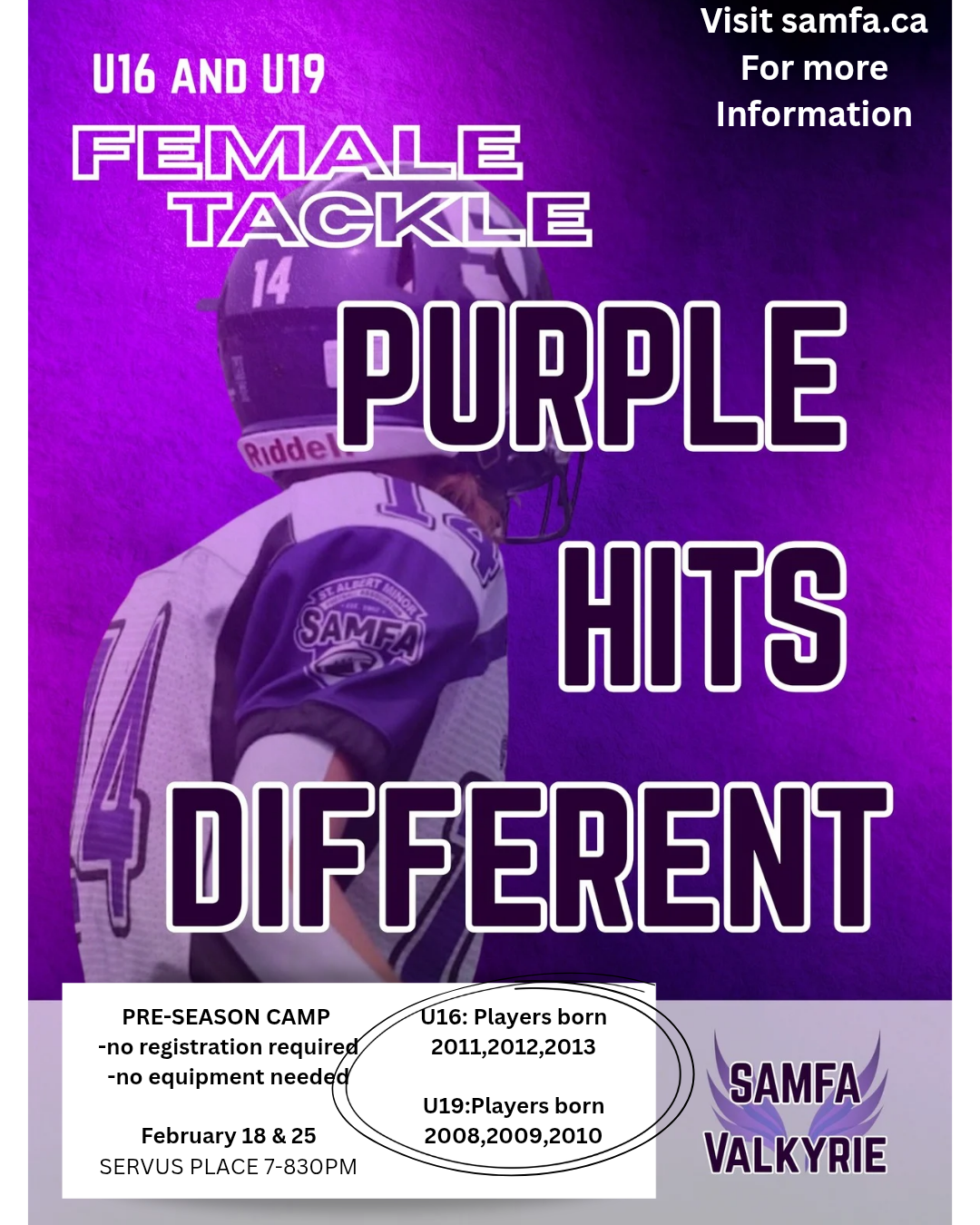 Female Tackle U16 and U19 Pre season Camp! Bring a Friend